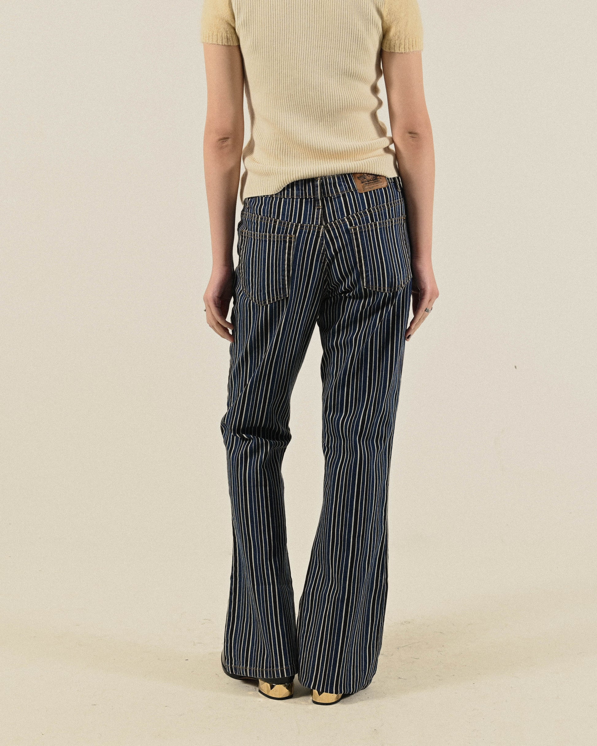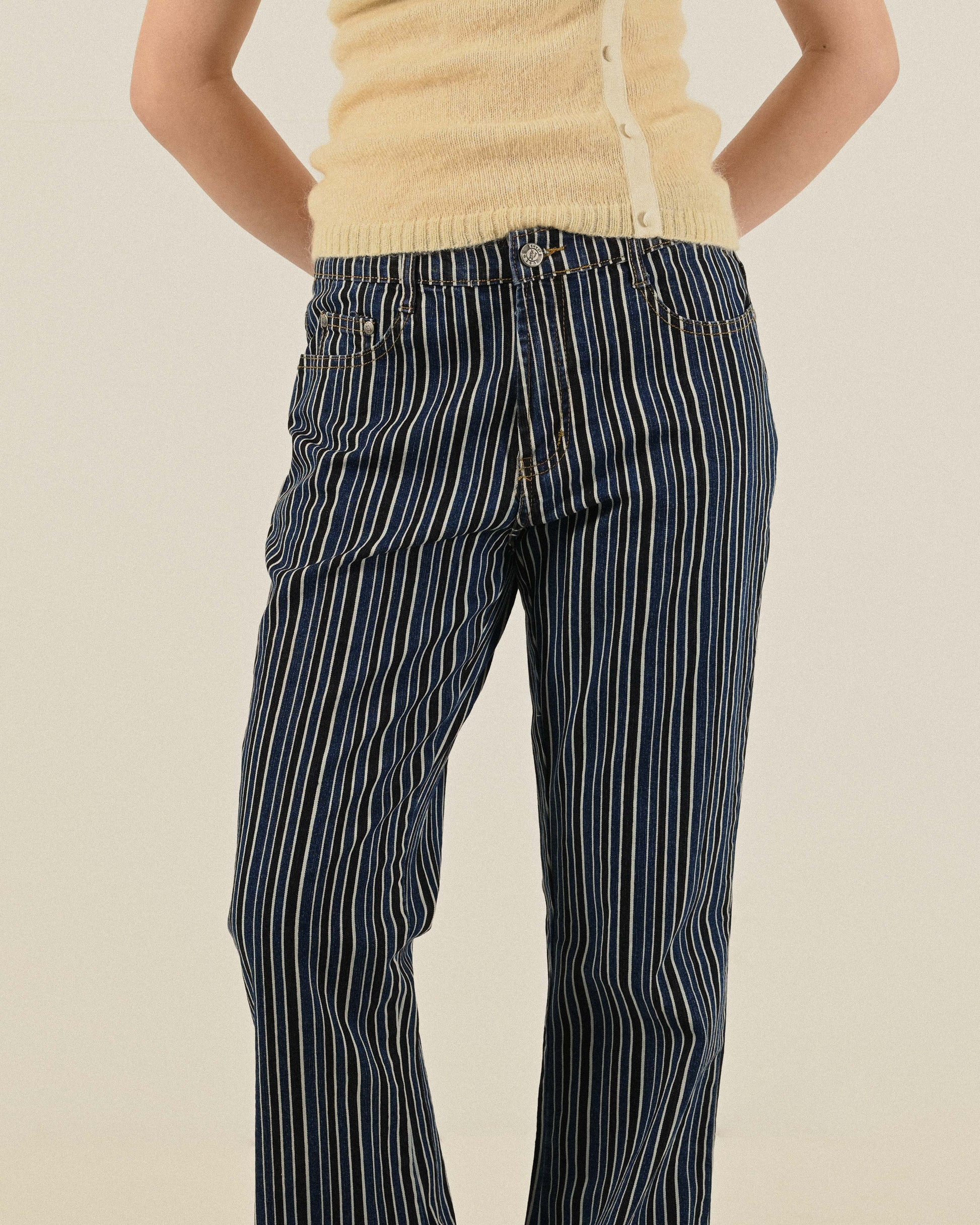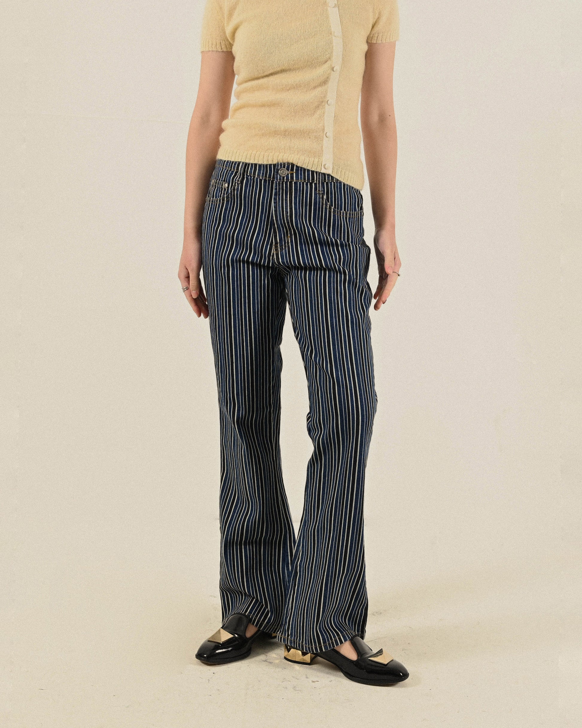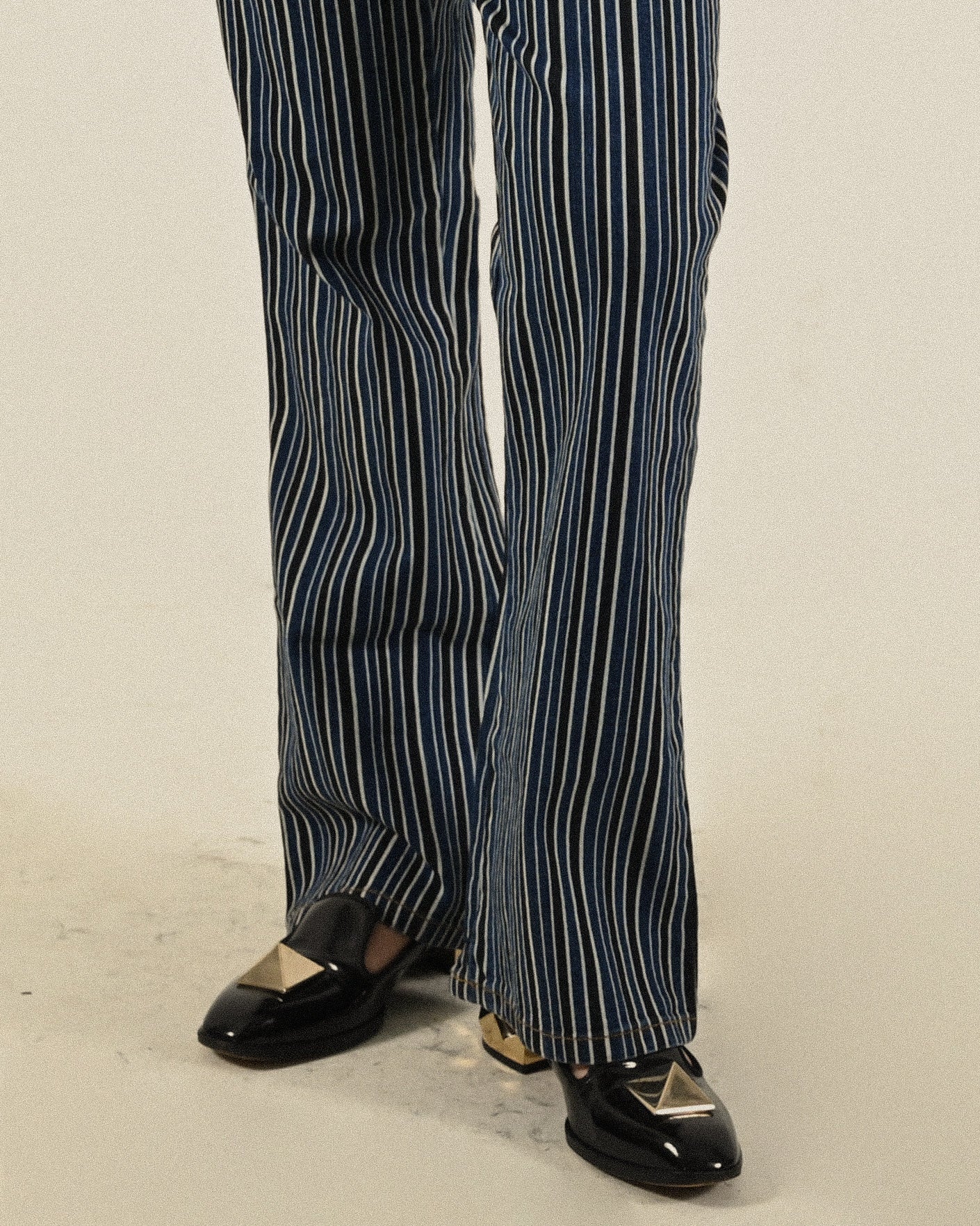 俐落輪廓條紋牛仔古著長褲
