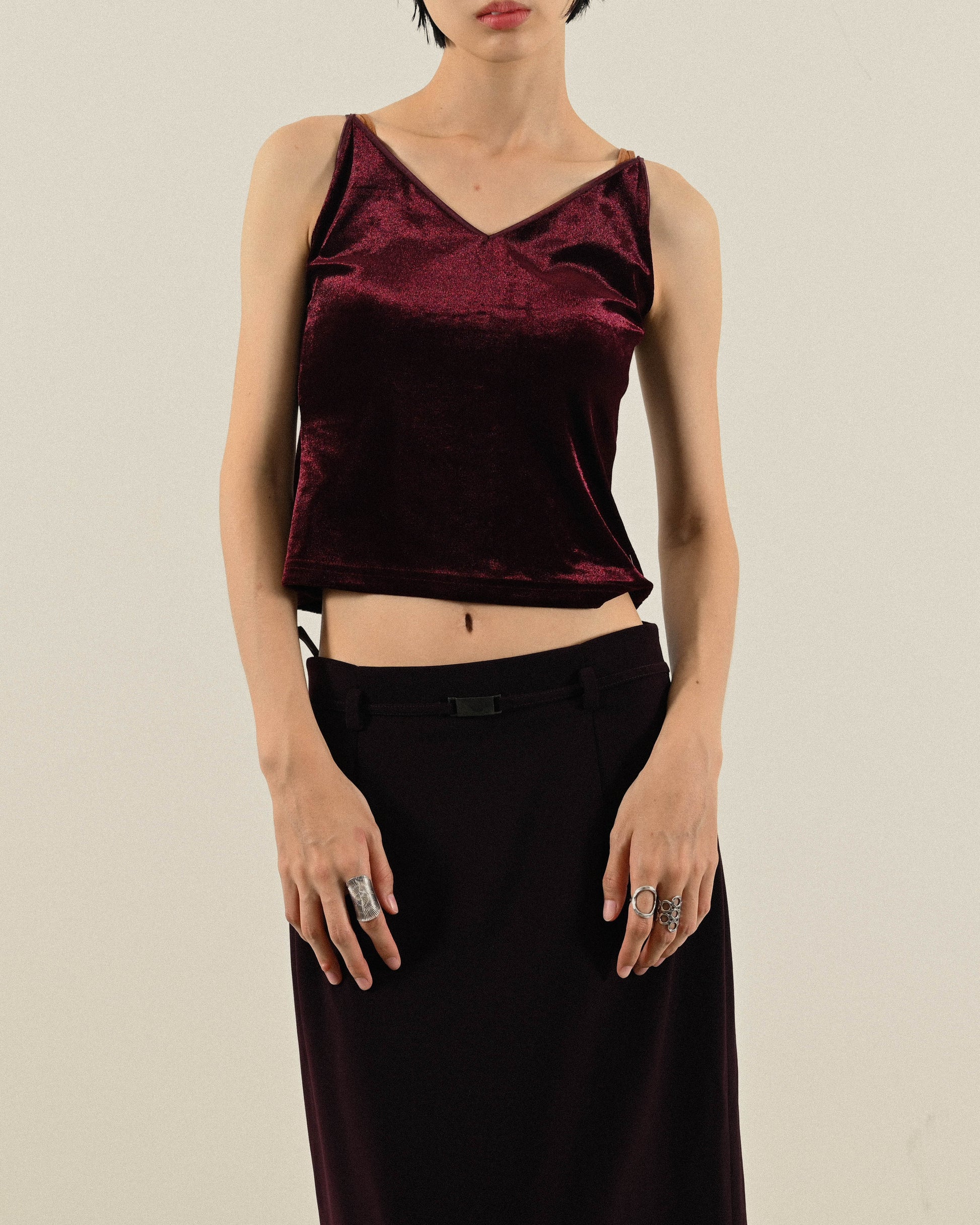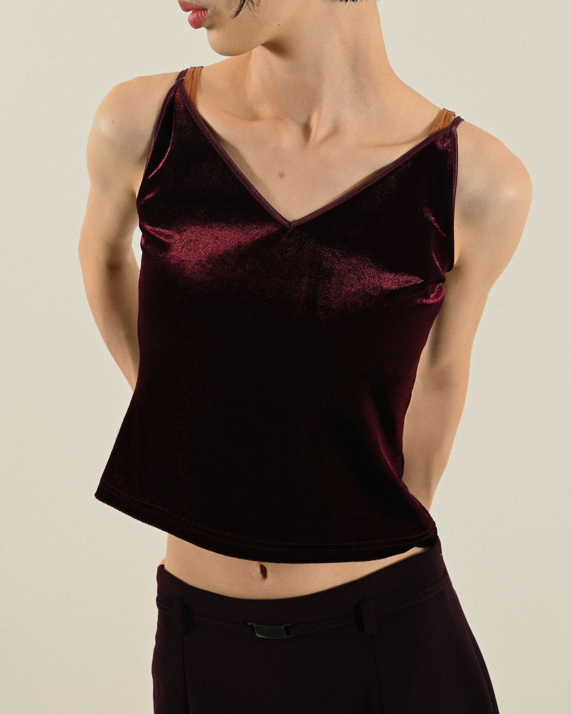 光緞天鵝絨細肩帶古著背心