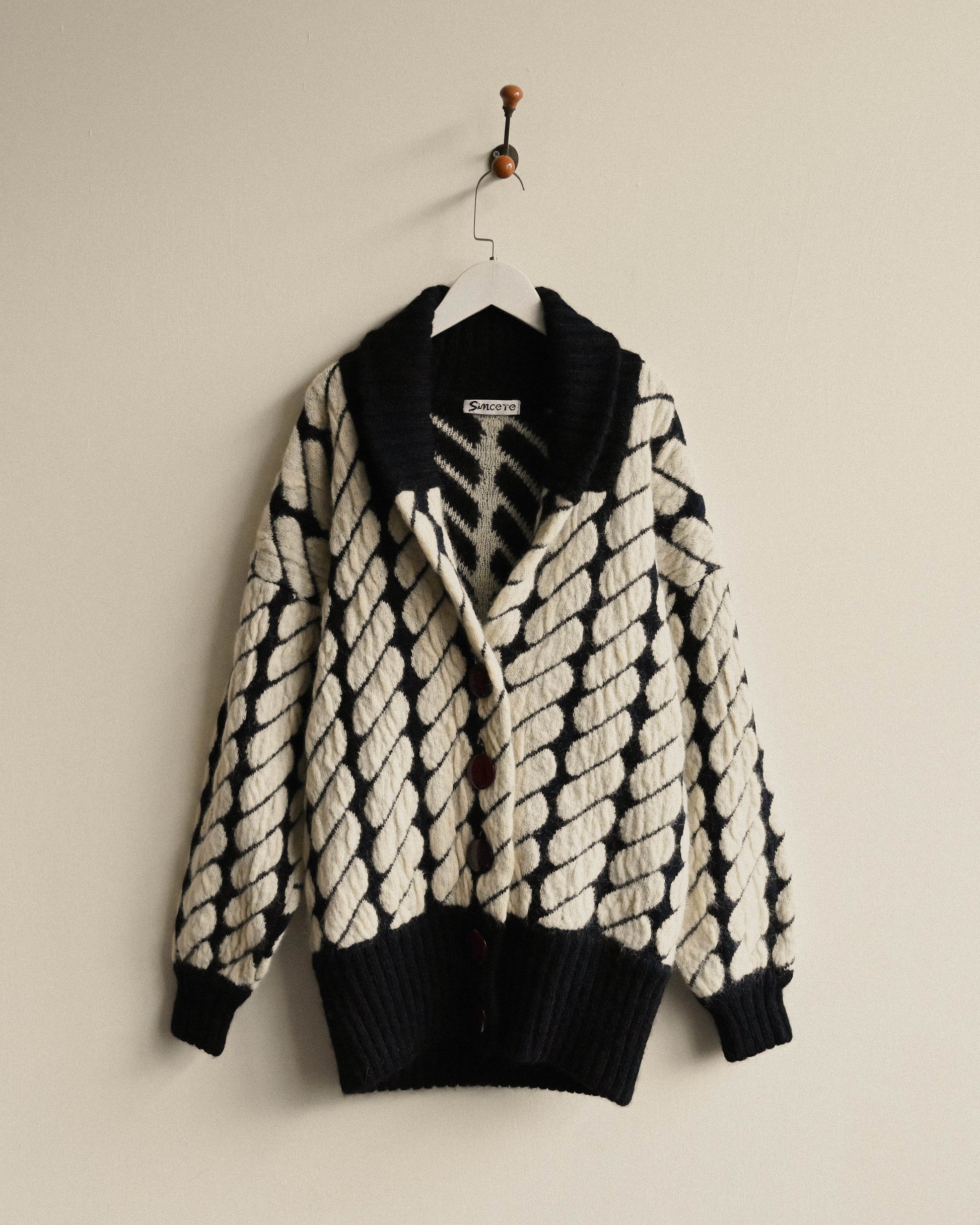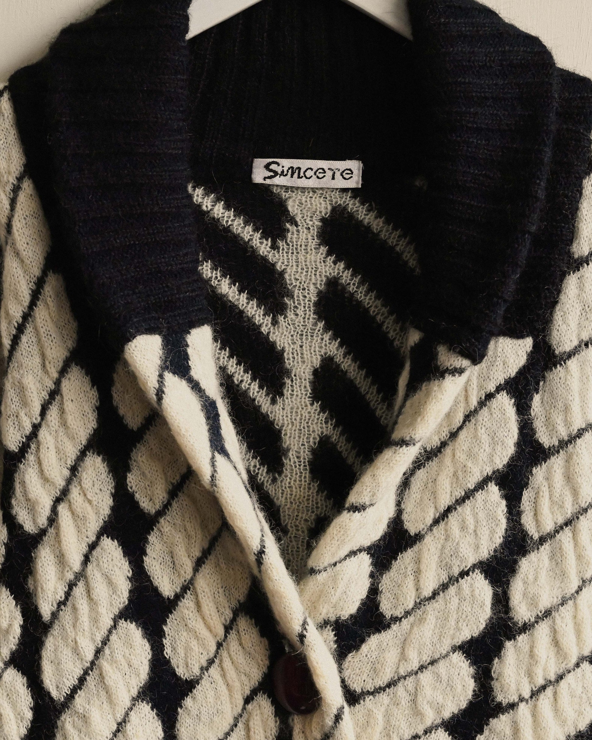 對色緹花開襟古著毛衣外套