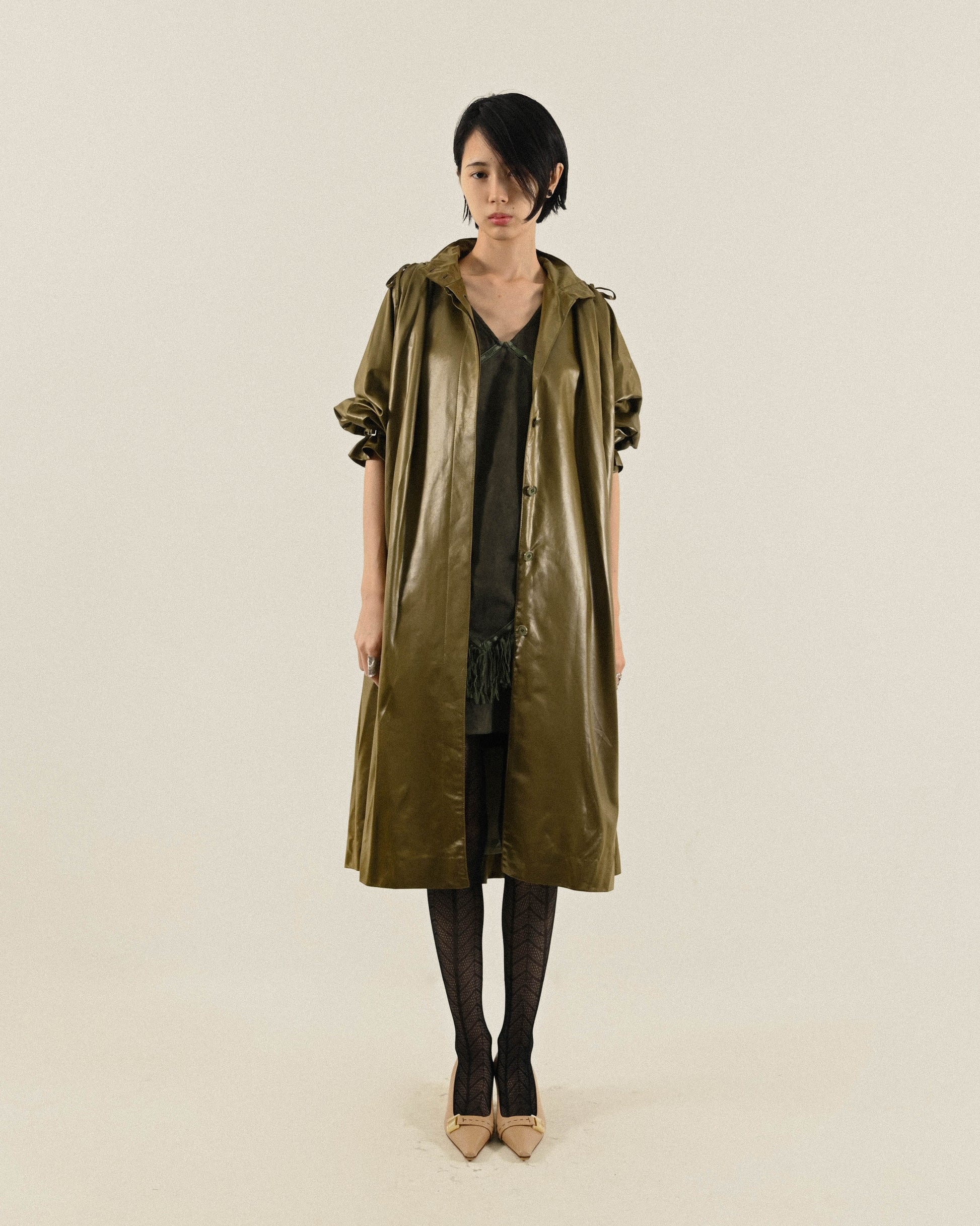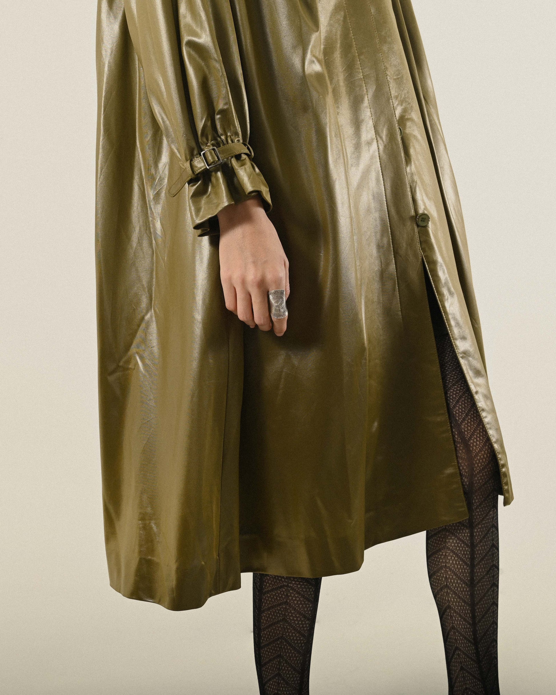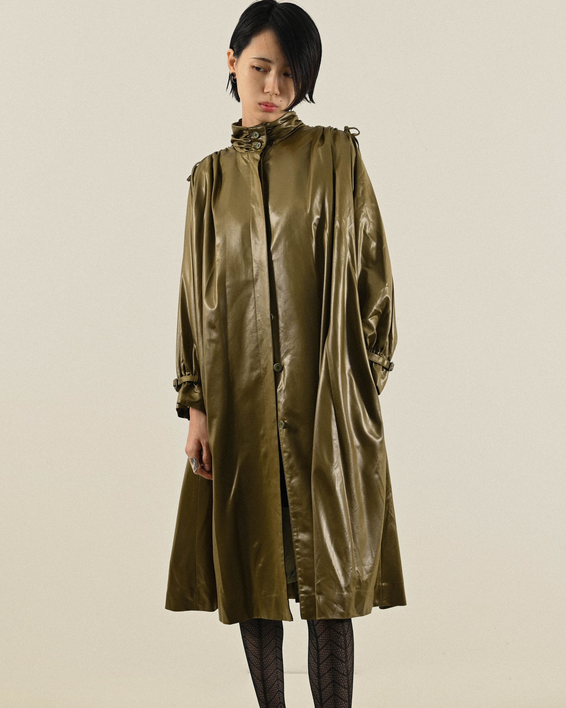 日本製光緞質感傘狀古著風衣
