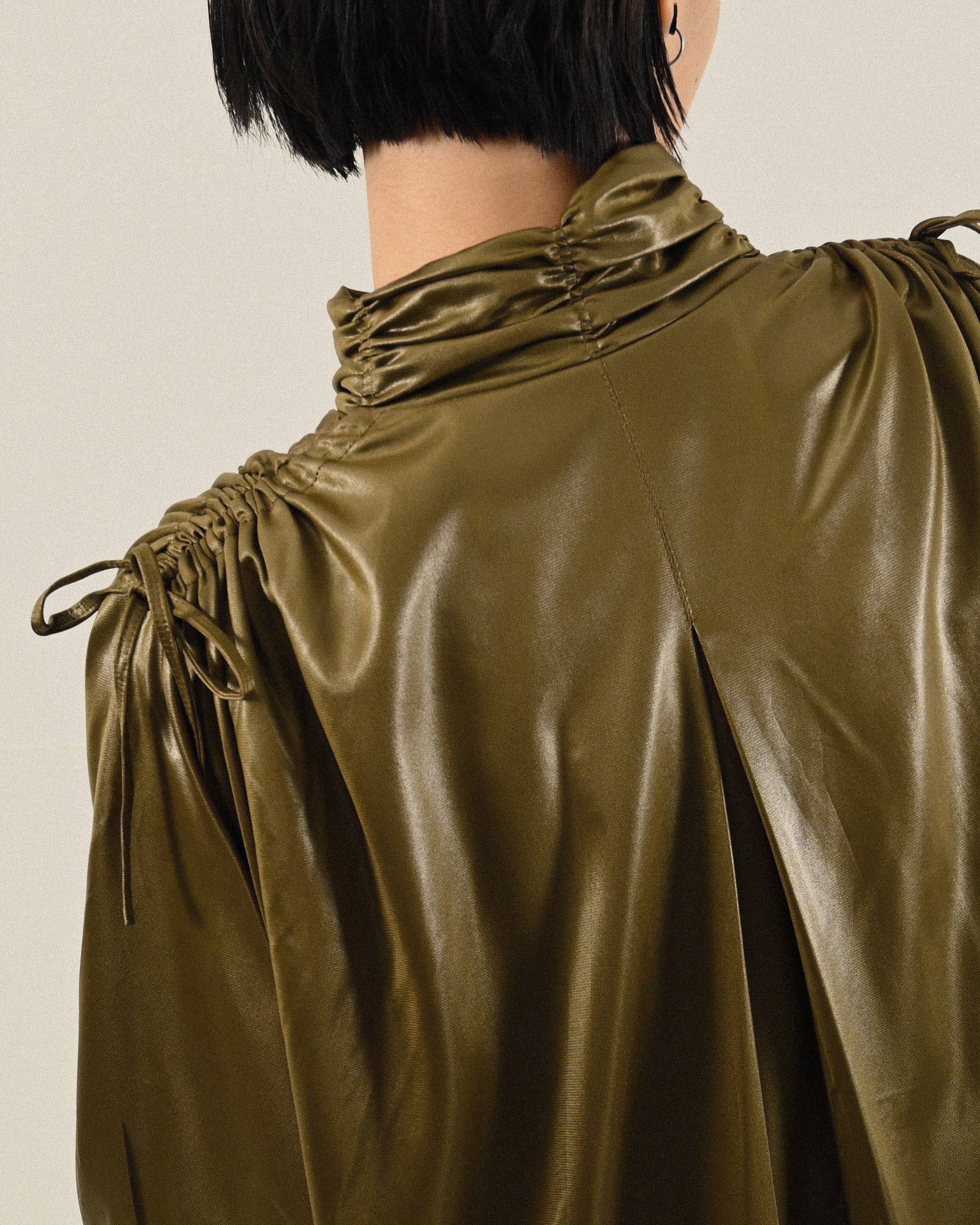- 抽褶高領。
