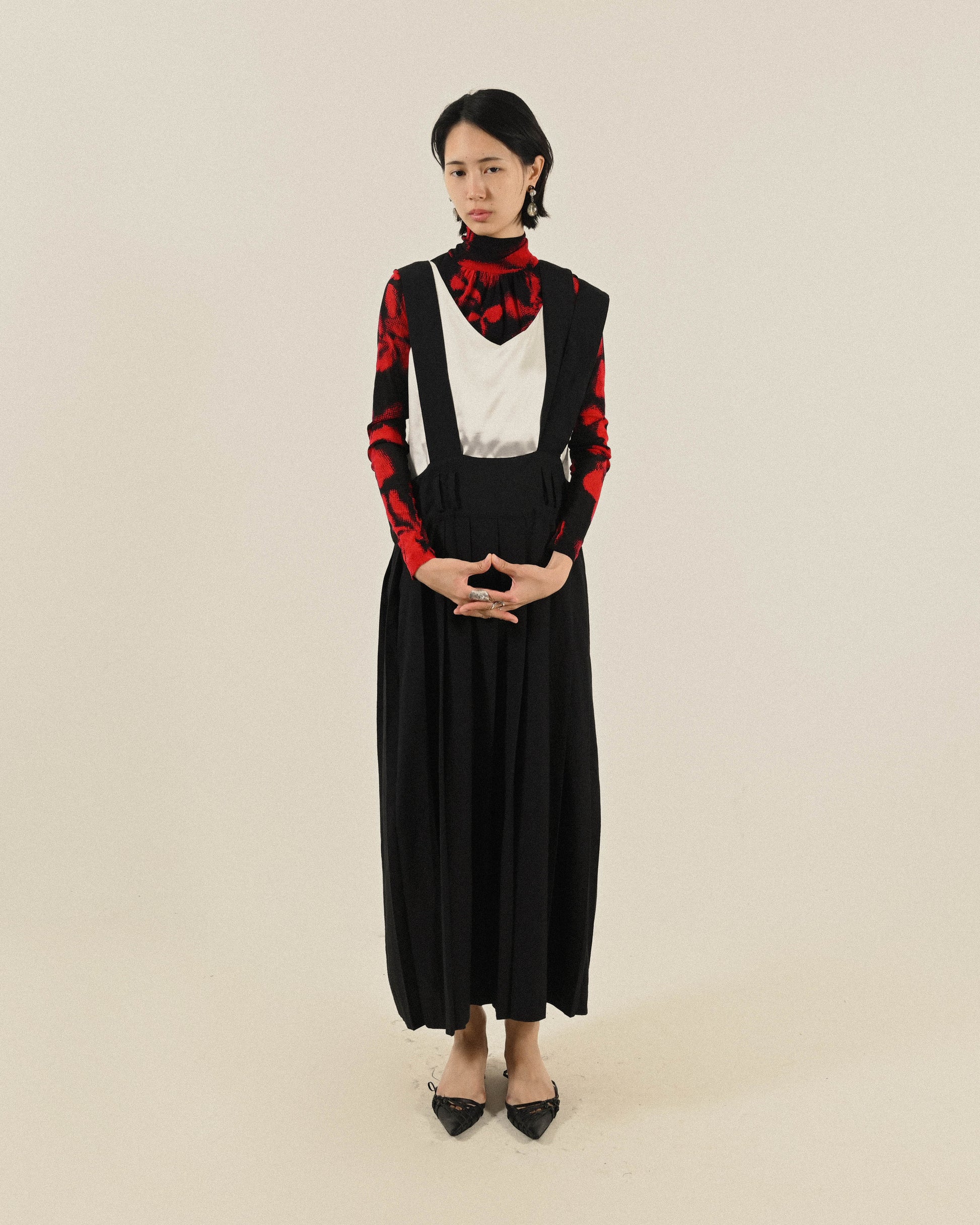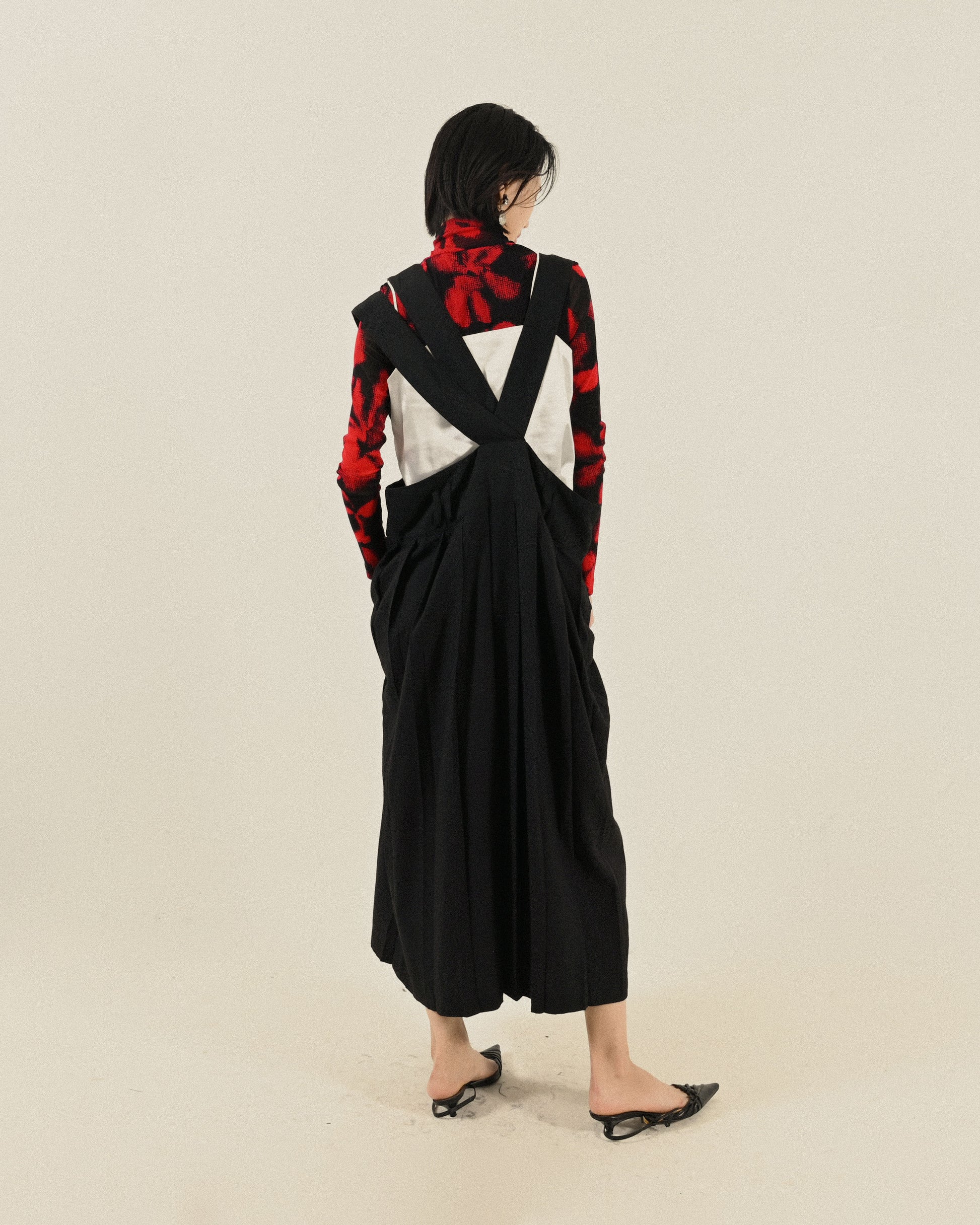- 飄逸百褶裙擺。