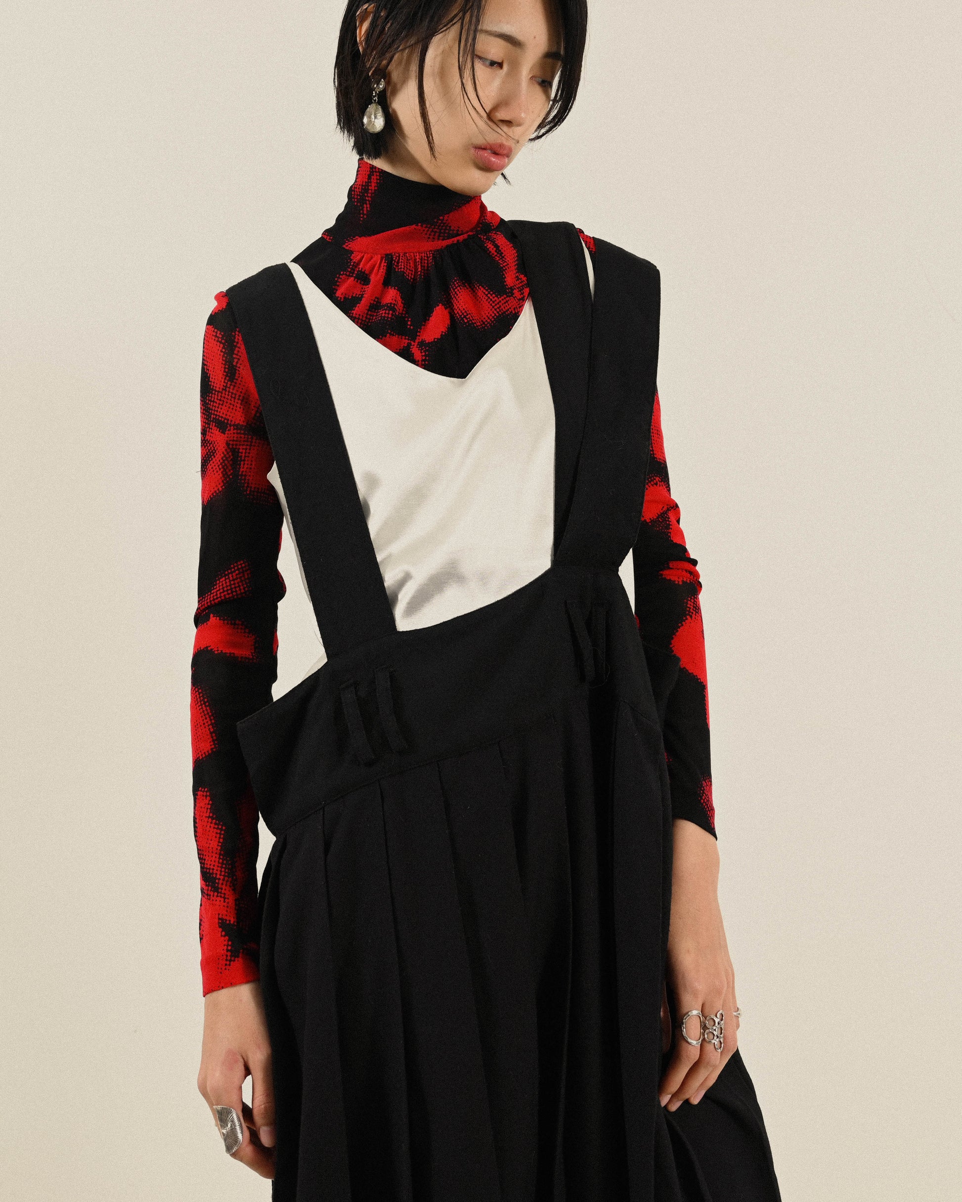 日本製造型肩帶百褶古著吊帶裙