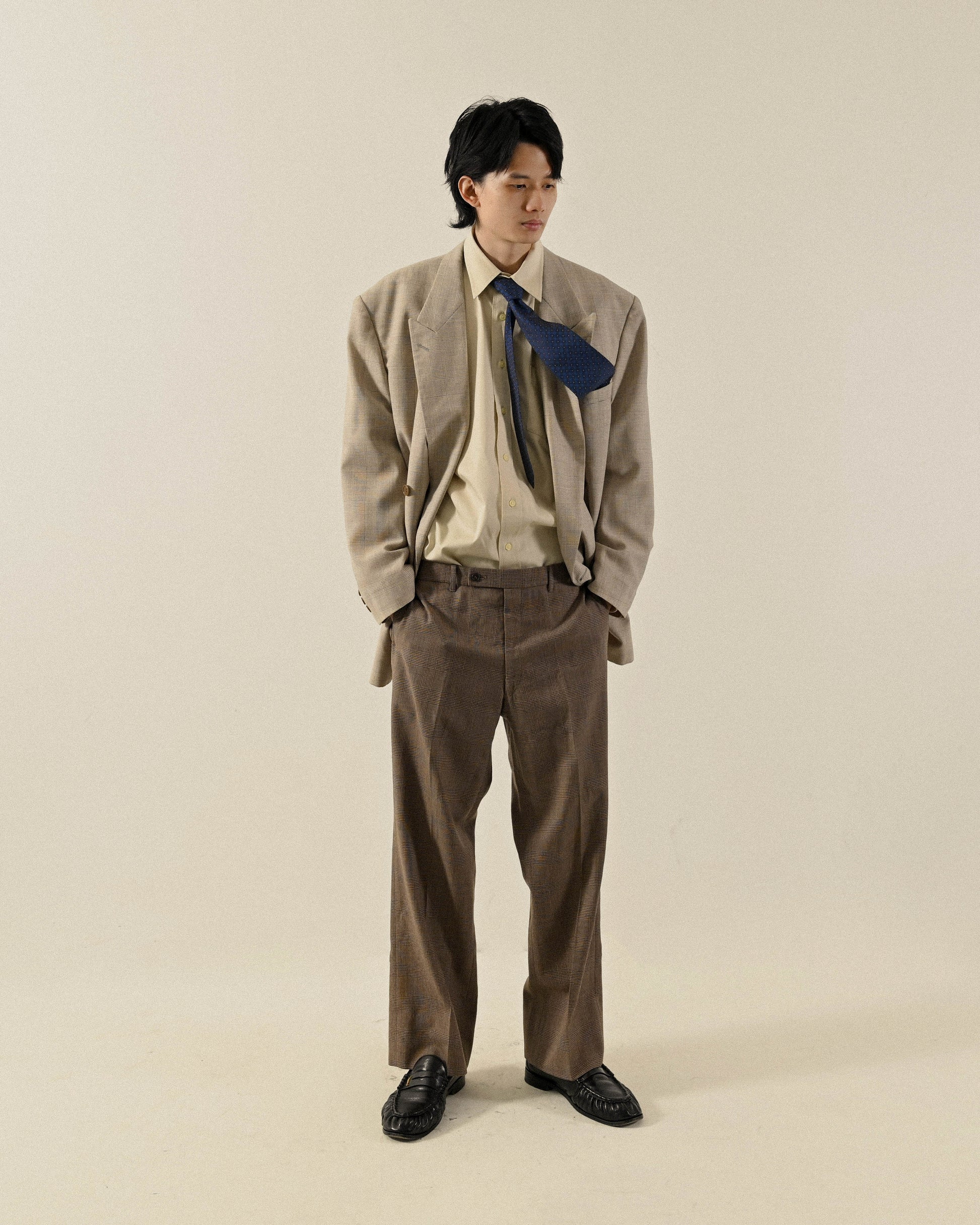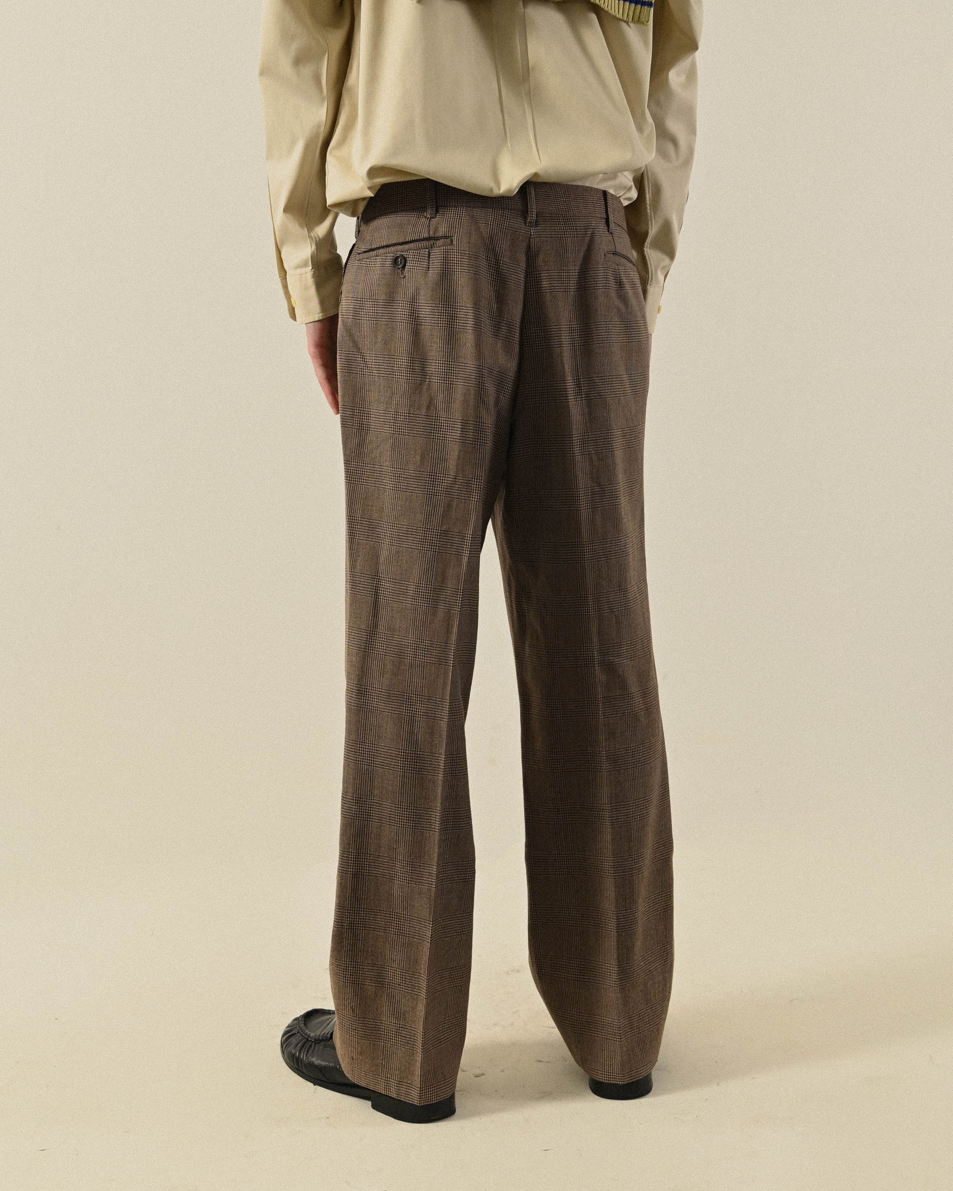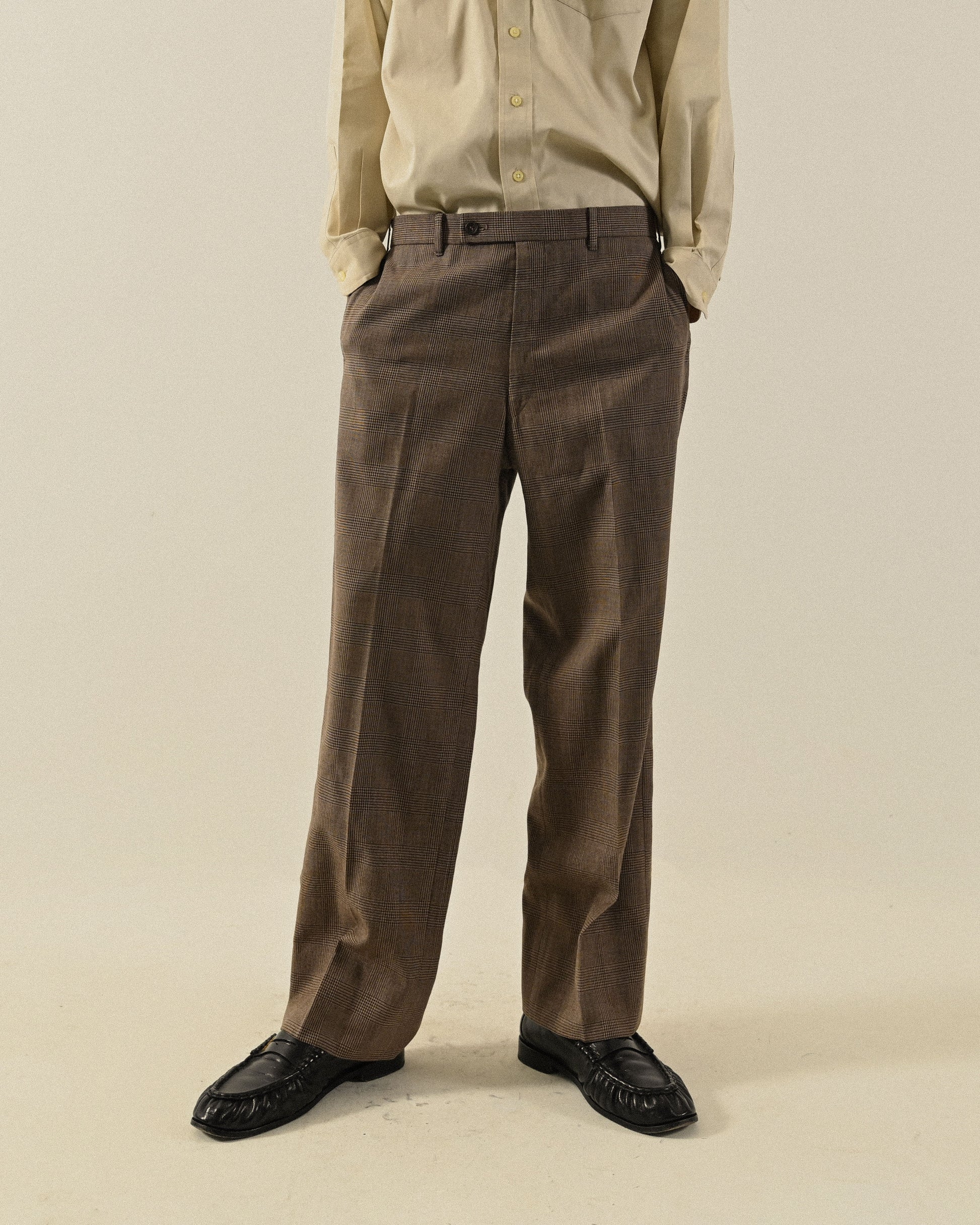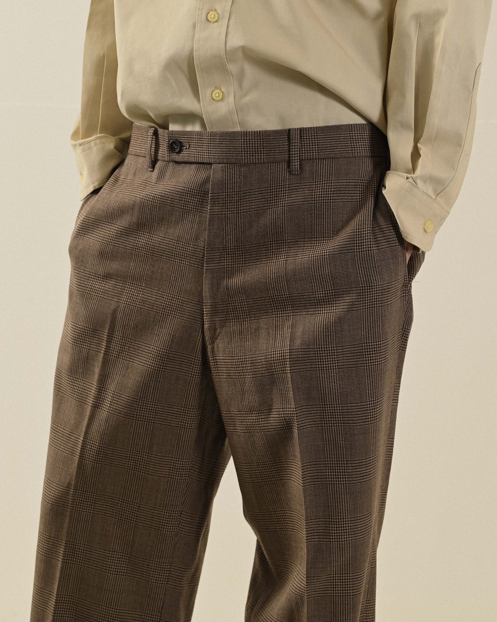 格紋毛料古著西裝長褲