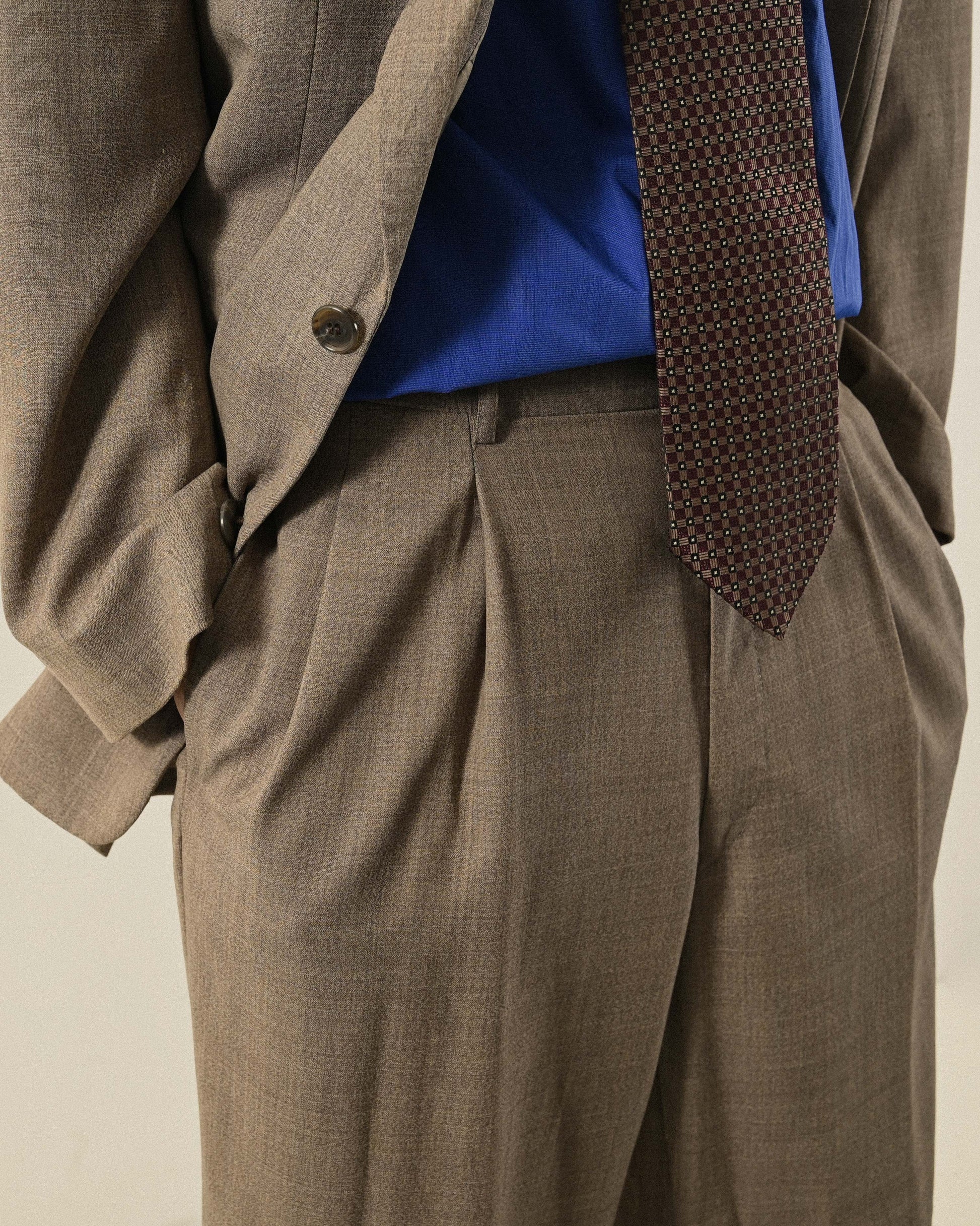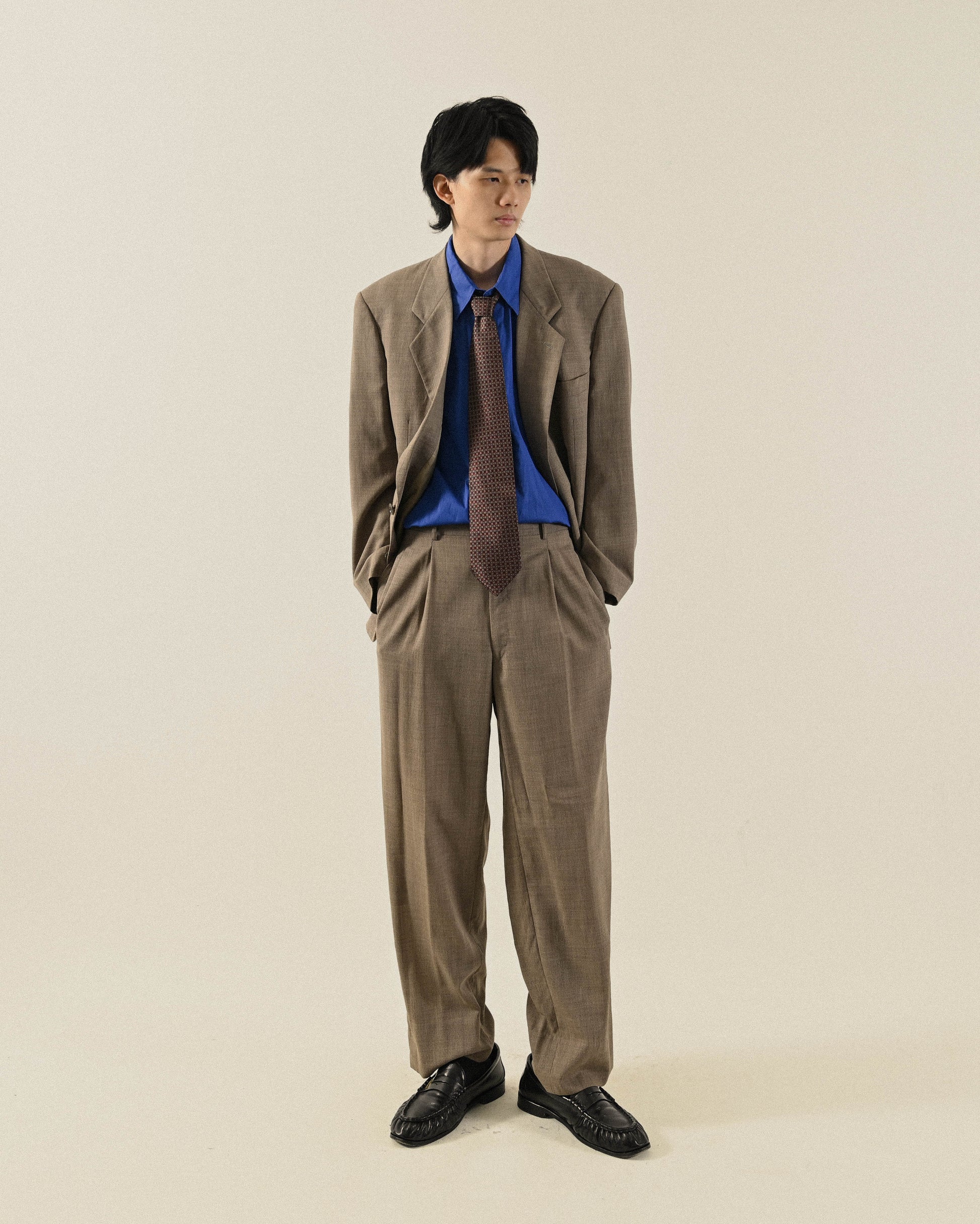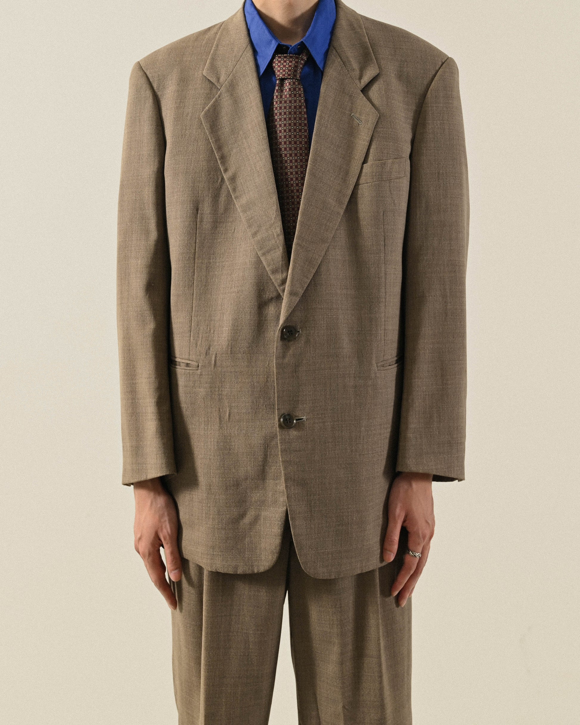 燕麥色薄毛經典輪廓古著西裝套裝