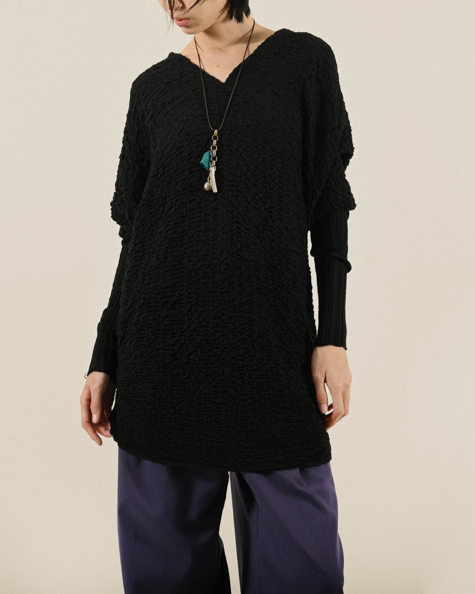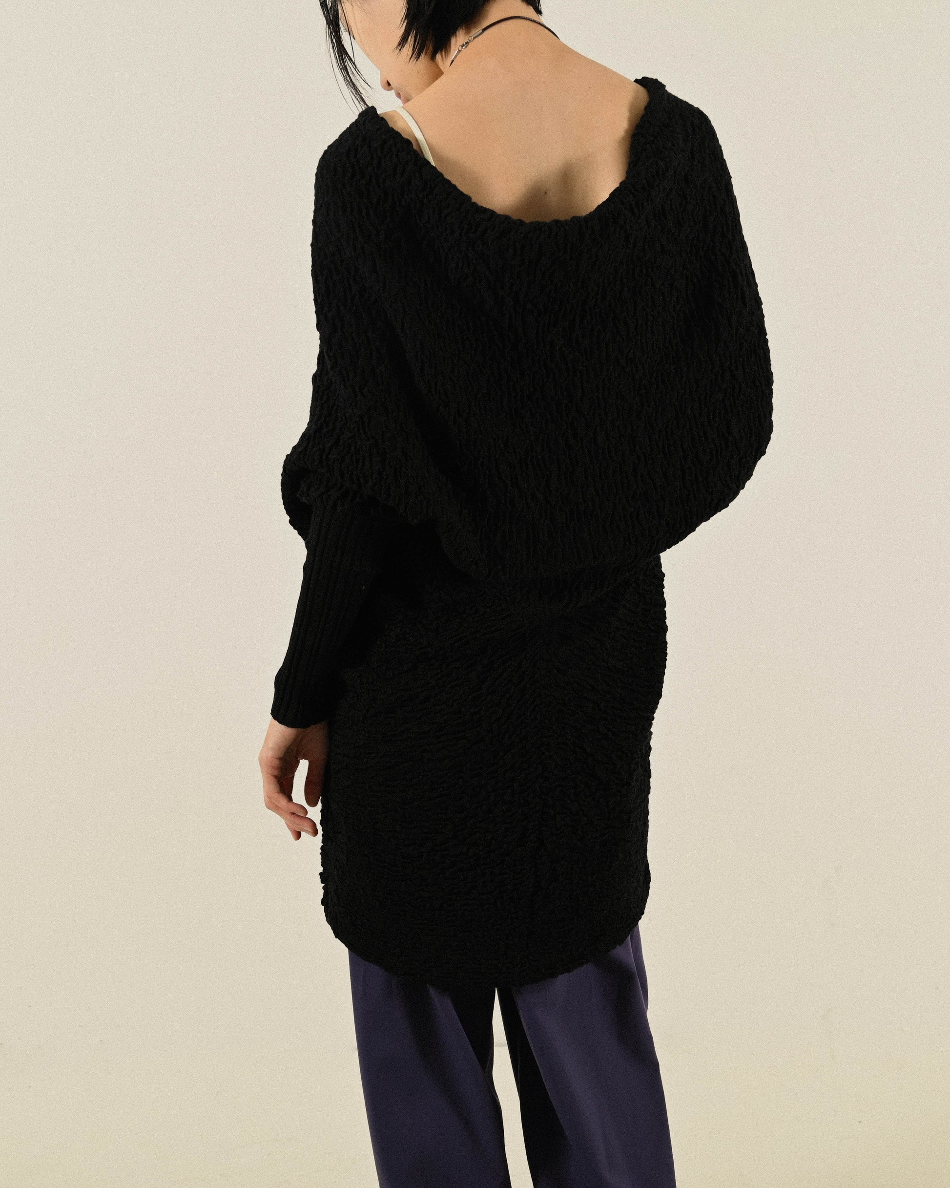 挖背設計紋理針織長版古著上衣