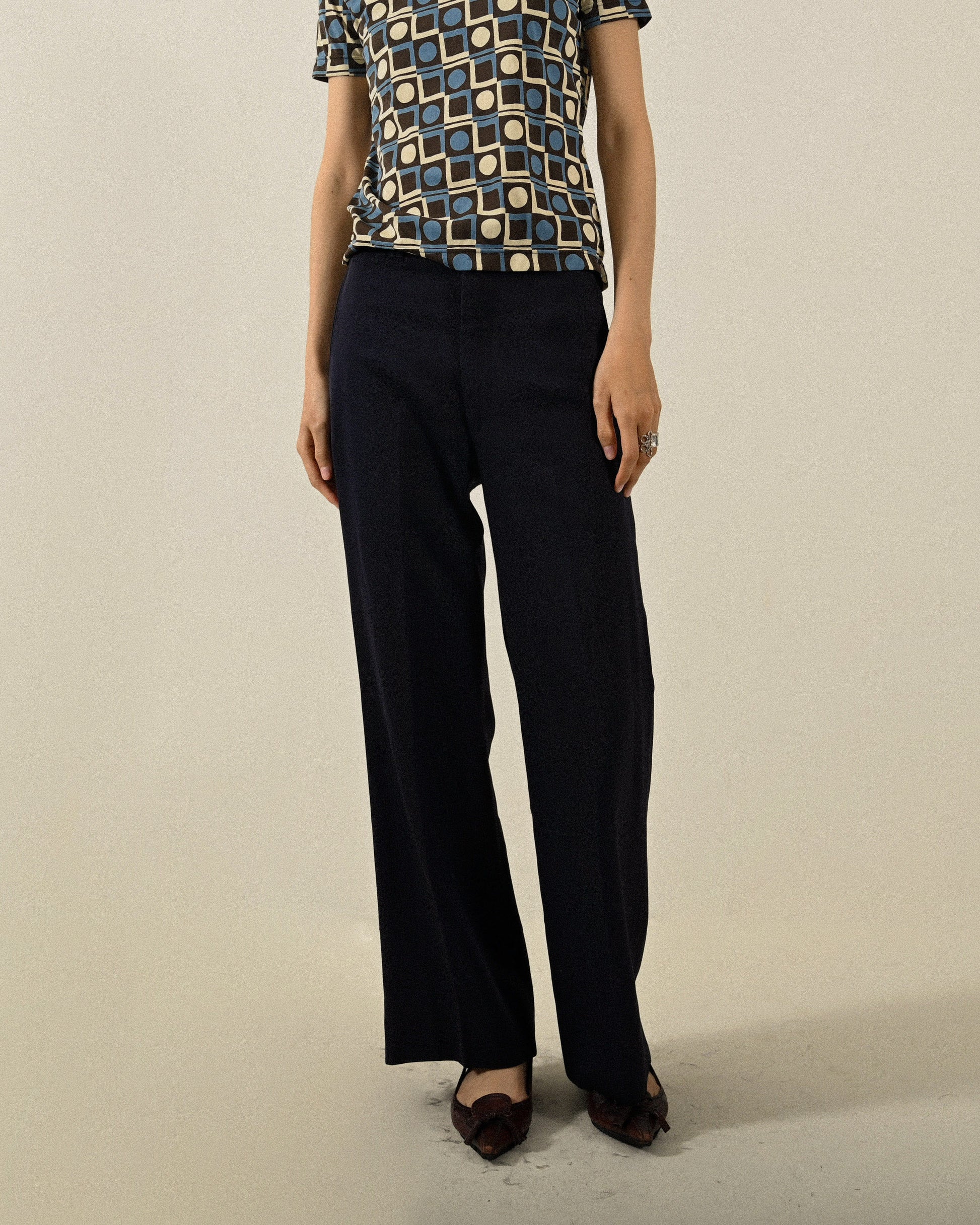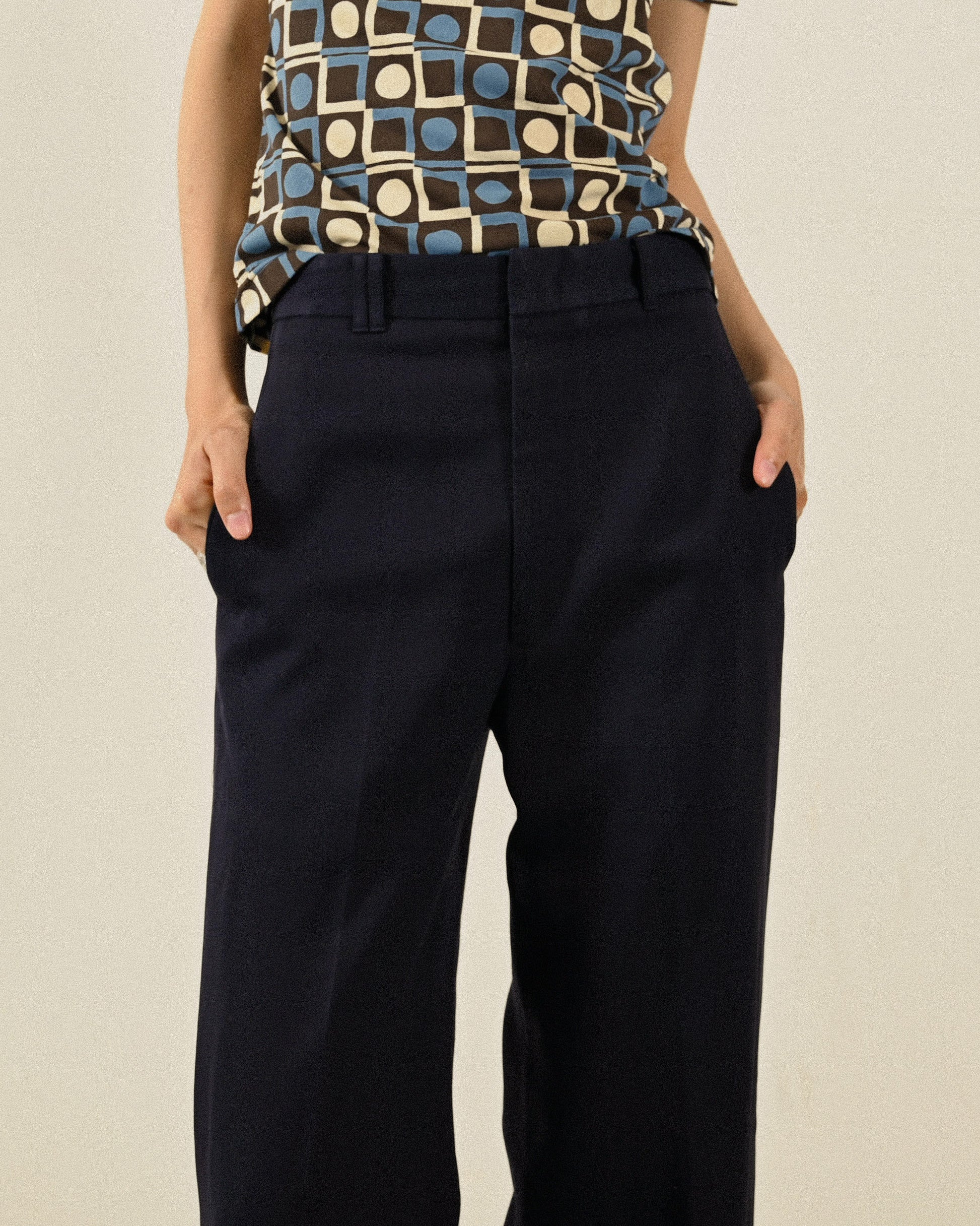 經典輪廓純色古著長褲
