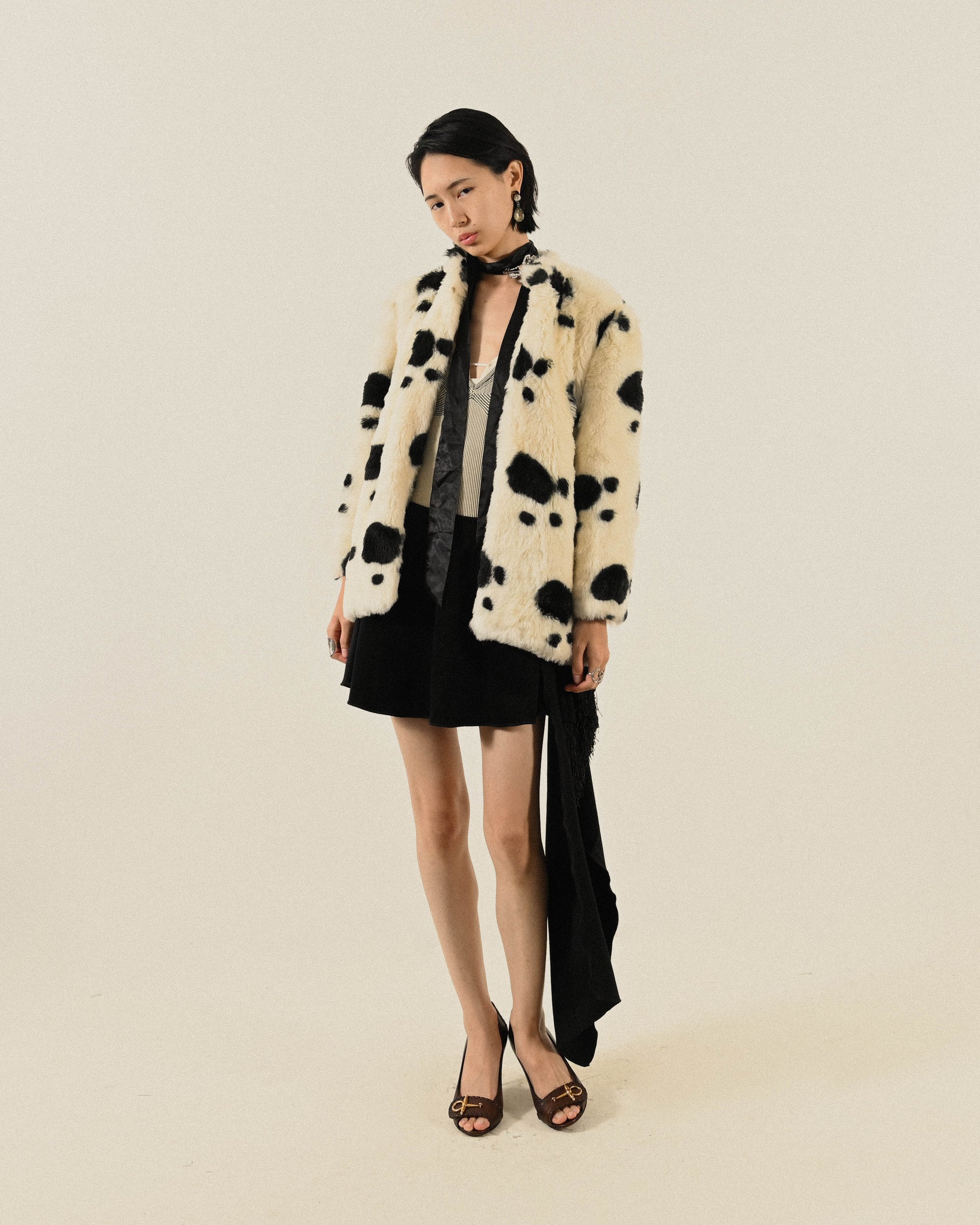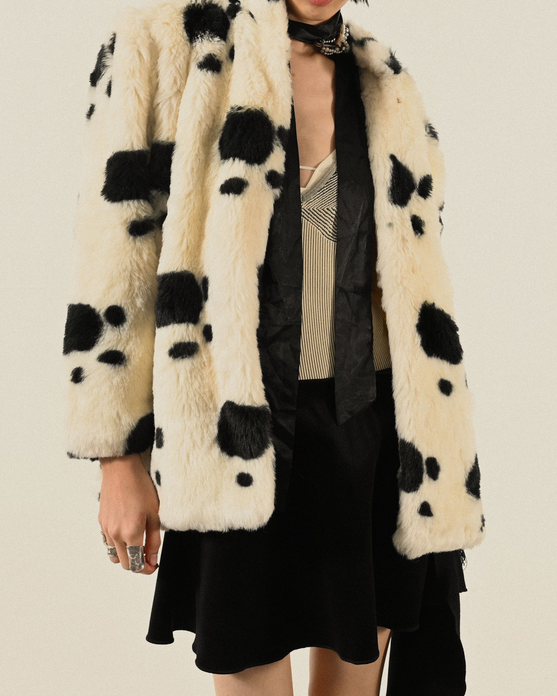 黑白斑紋人造皮草古著外套