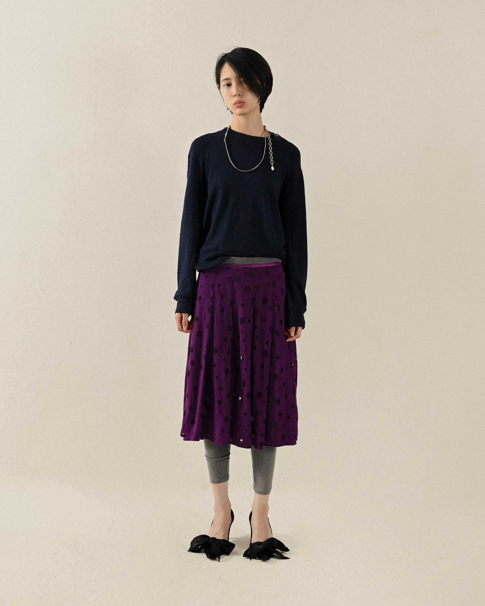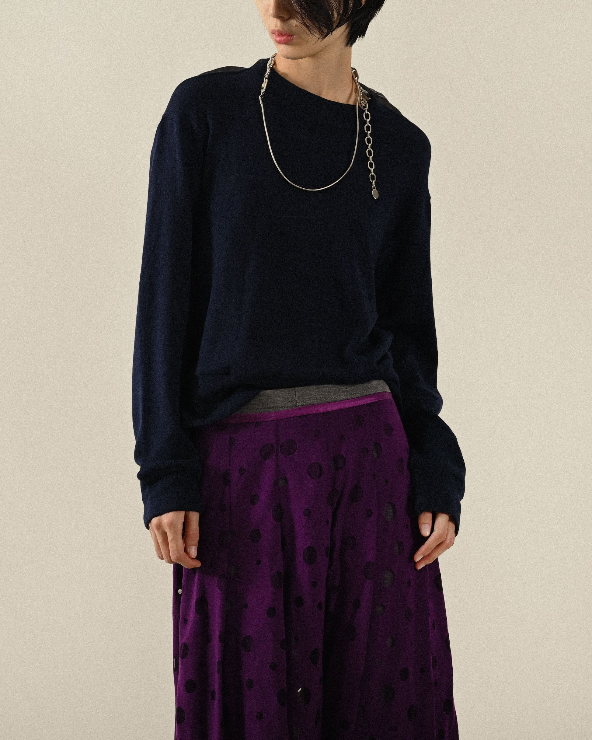 - 光澤烏干紗拼接。