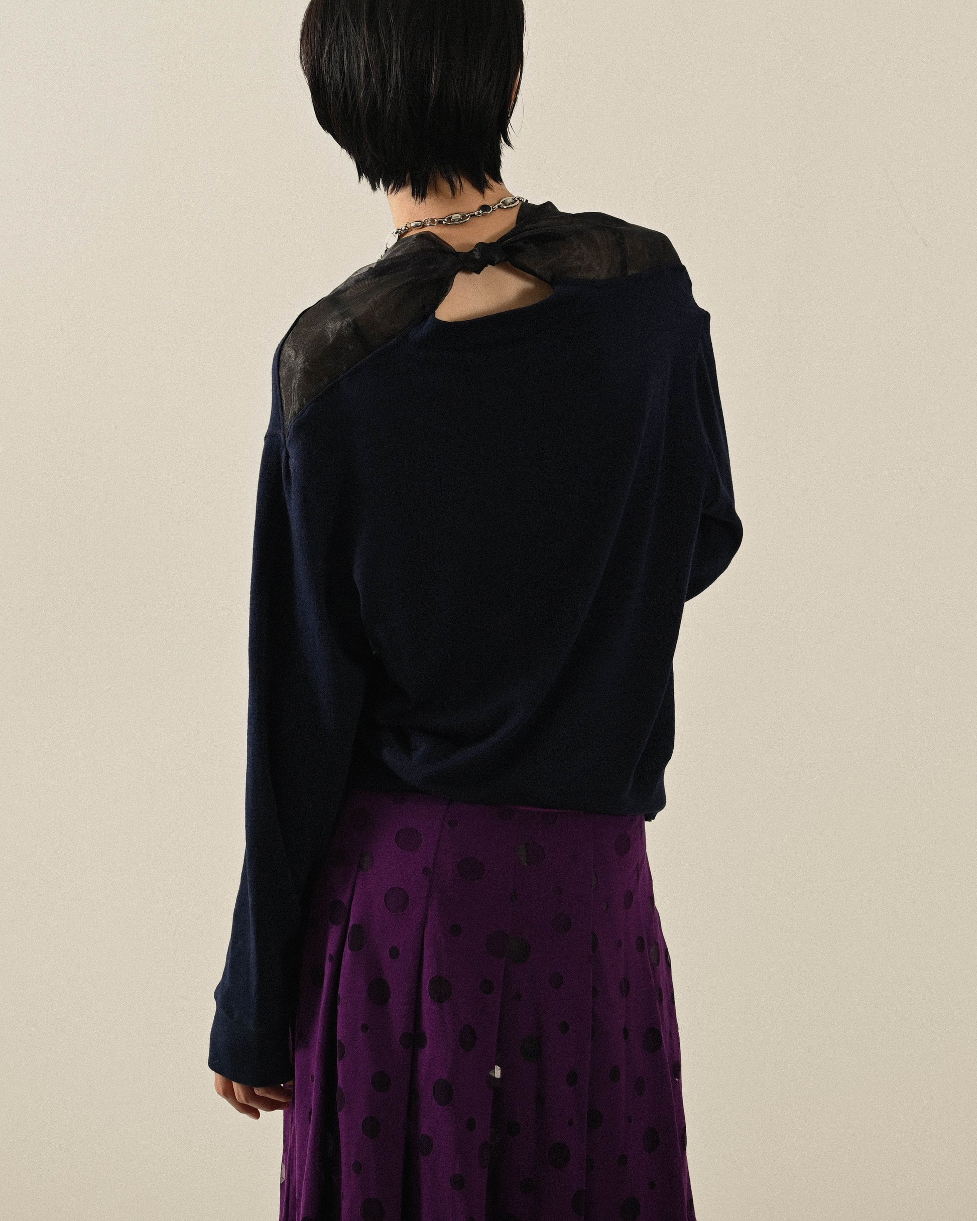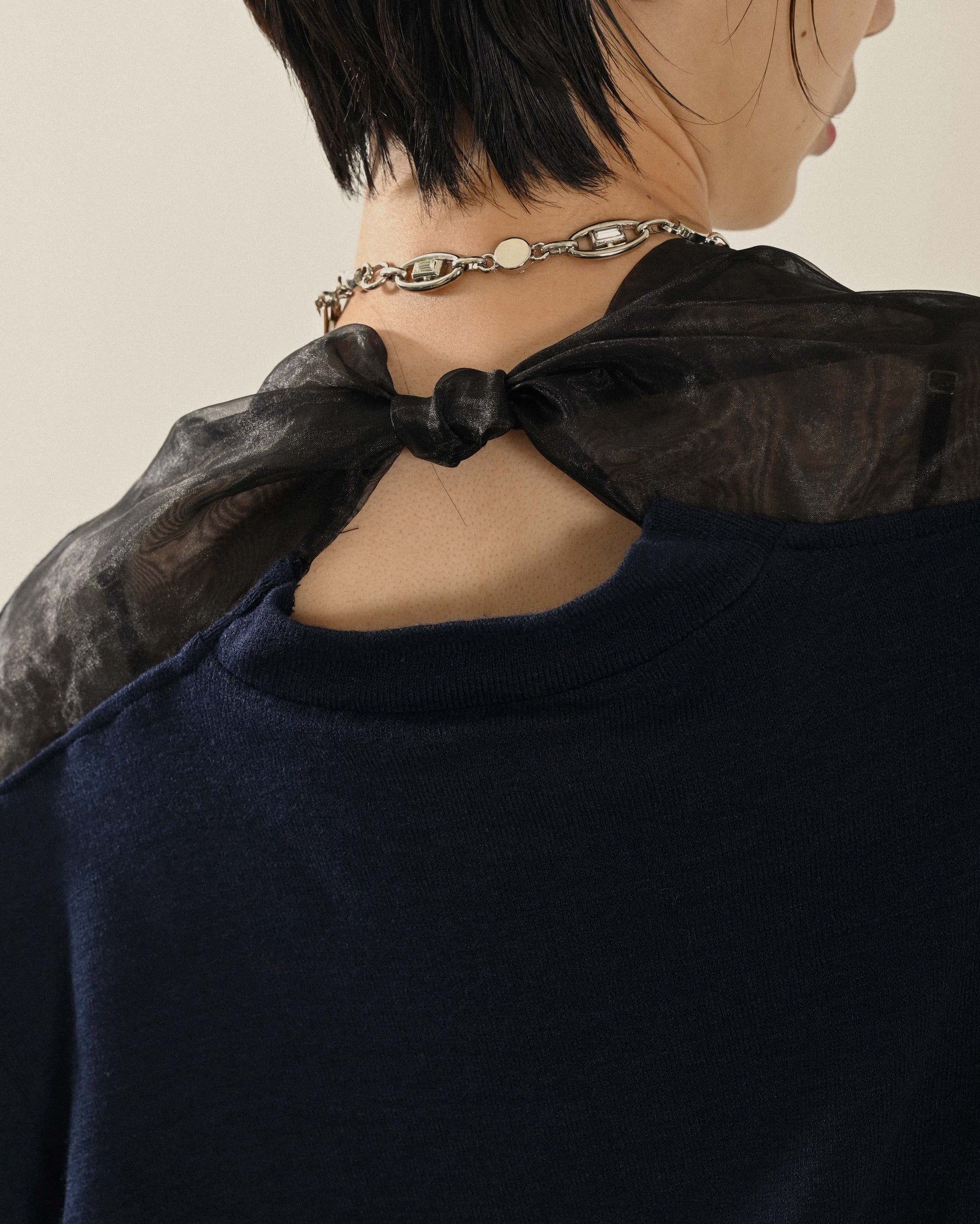 Upcycling紗質綁帶古著針織上衣