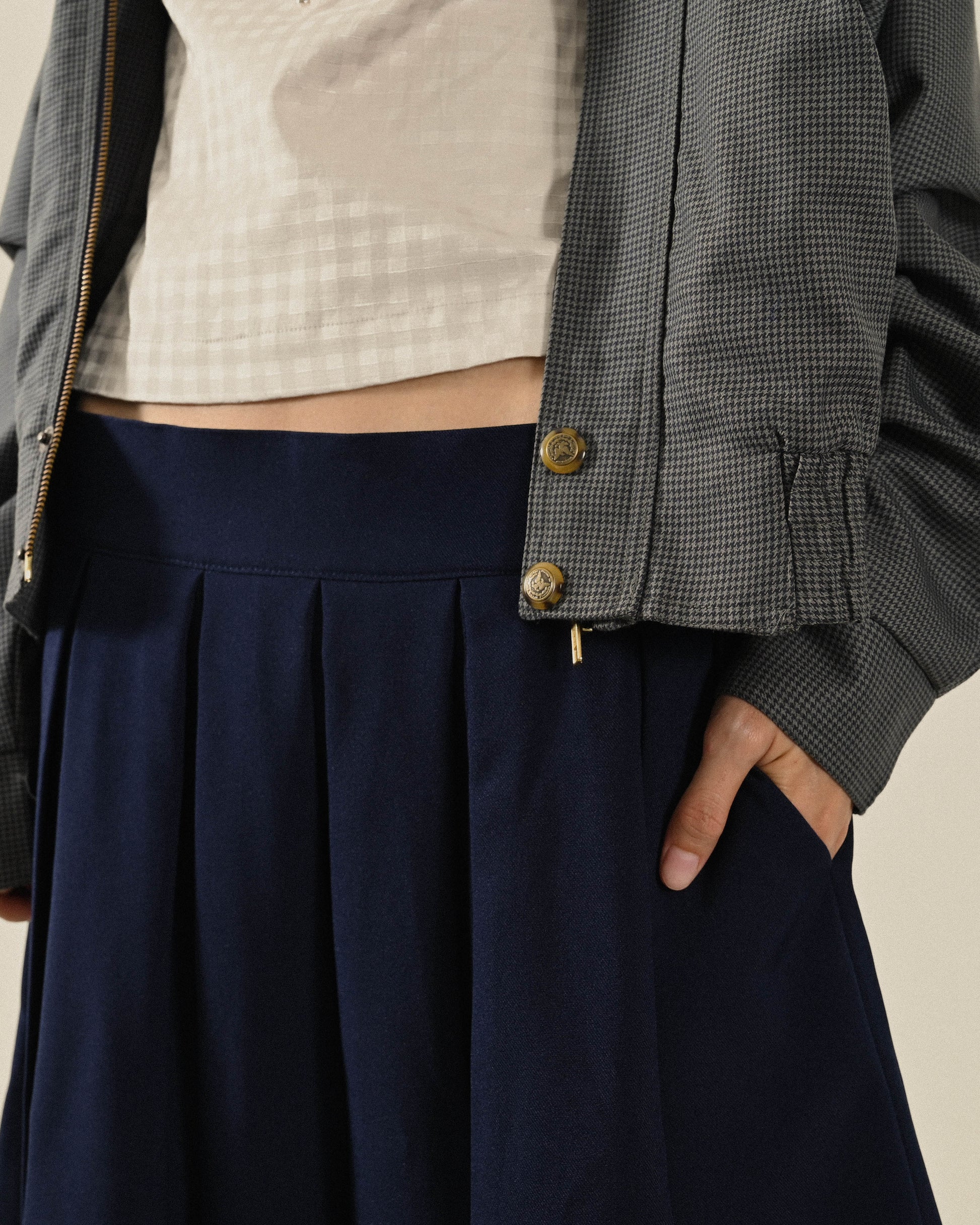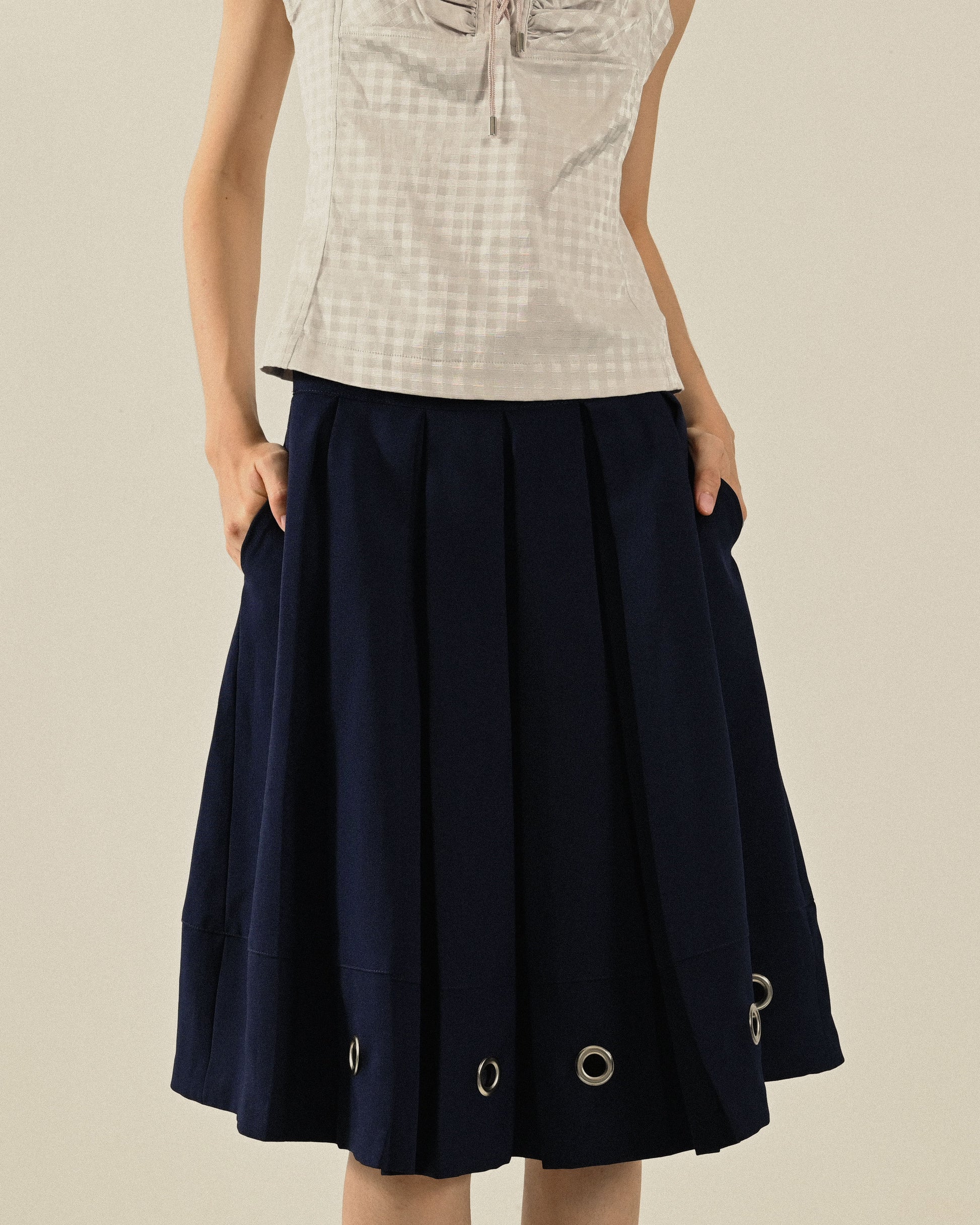 Upcycling釦洞綴飾古著百褶裙