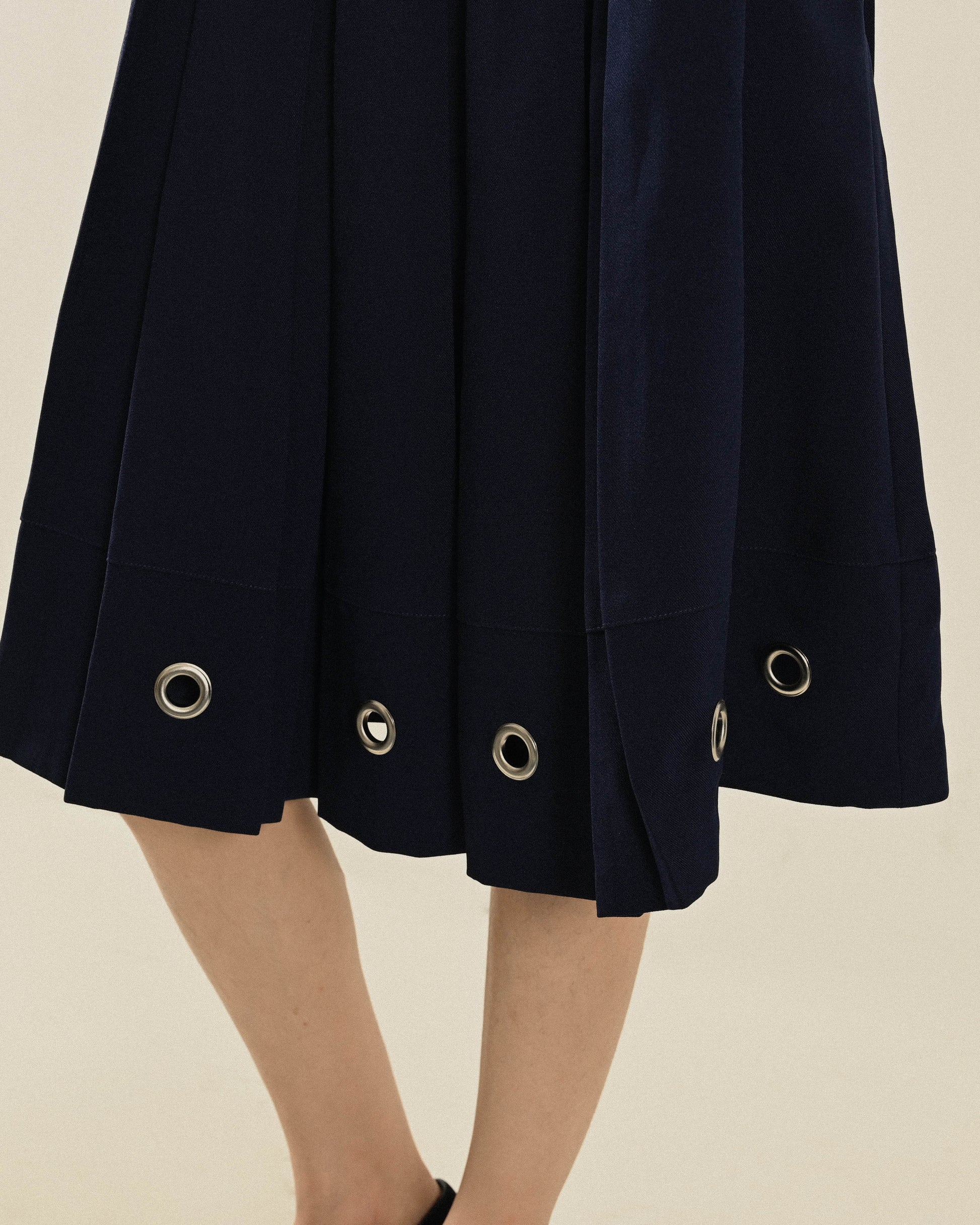 - 細緻寬百褶裙擺。